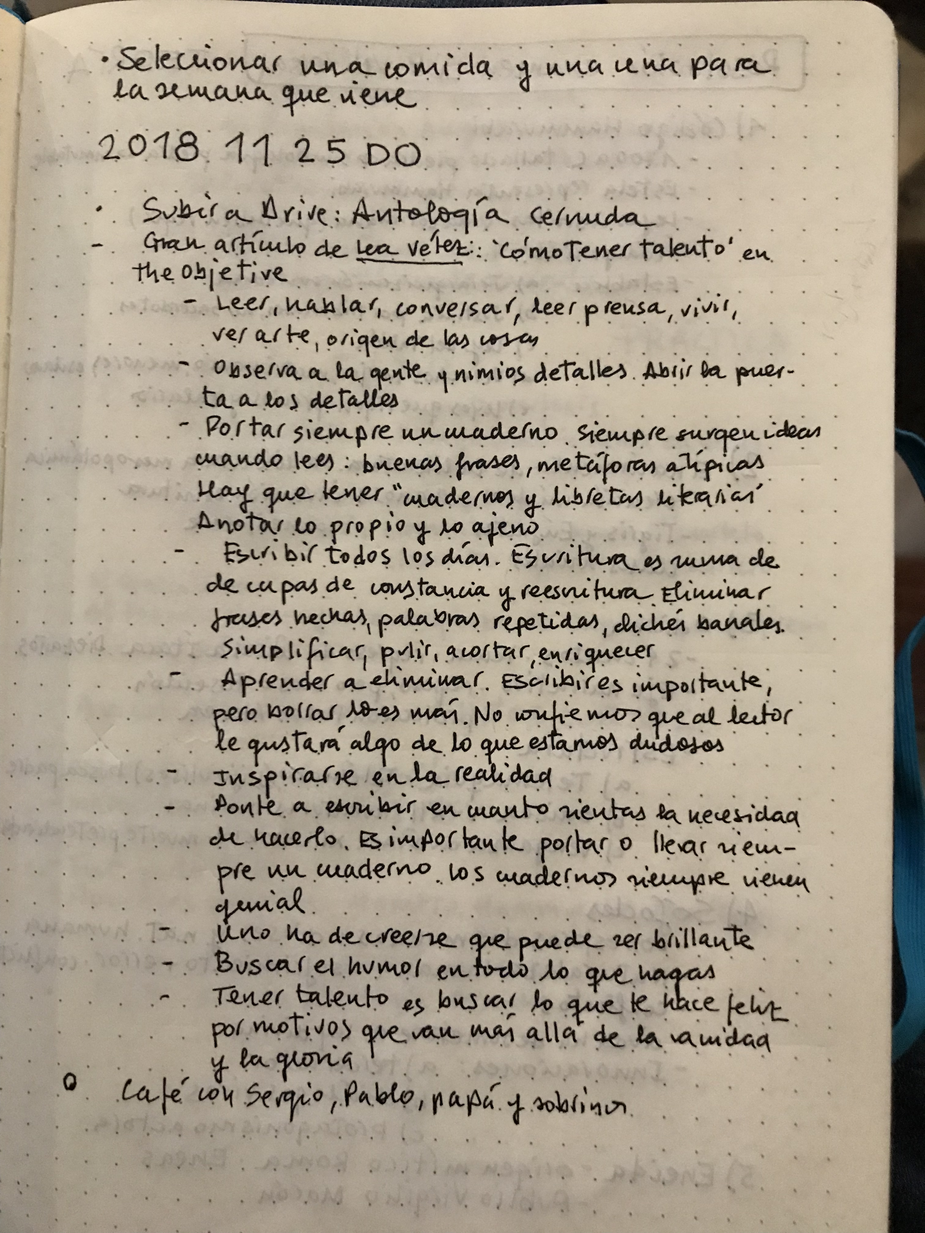 También extraje, por la mañana del domingo, las esencias de un artículo de Lea Vélez que quedó grabado en el Bullet Journal: