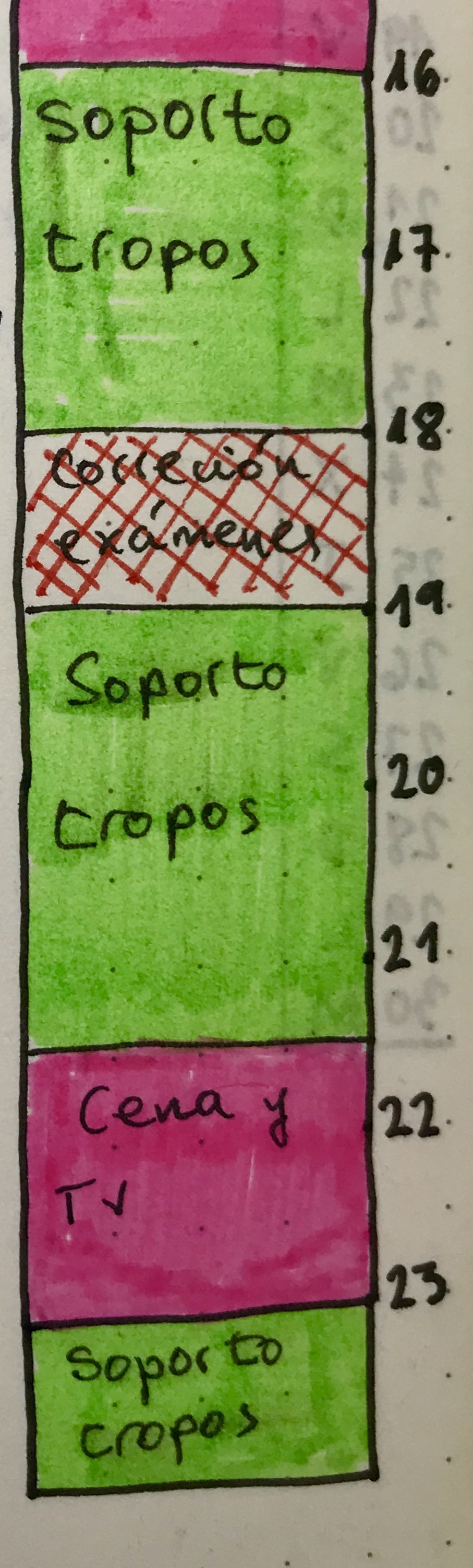 Según muestro en la fotografía del registro que llevo en mi cuaderno (BuJo), ayer dediqué cinco horas y media a «Soporto tropos», revista o fanzine, todavía no lo sé, que saldrá el 23 de abril de 2019. Y saldrá ese día con las páginas y los colaboradores que he conseguido reunir. Se cuentan con los dedos de ambas manos, antitropo donde los haya: siete valientes que me han ofrecido y cedido gratuitamente sus creaciones. Algunas, eso pretendo, darán que hablar.