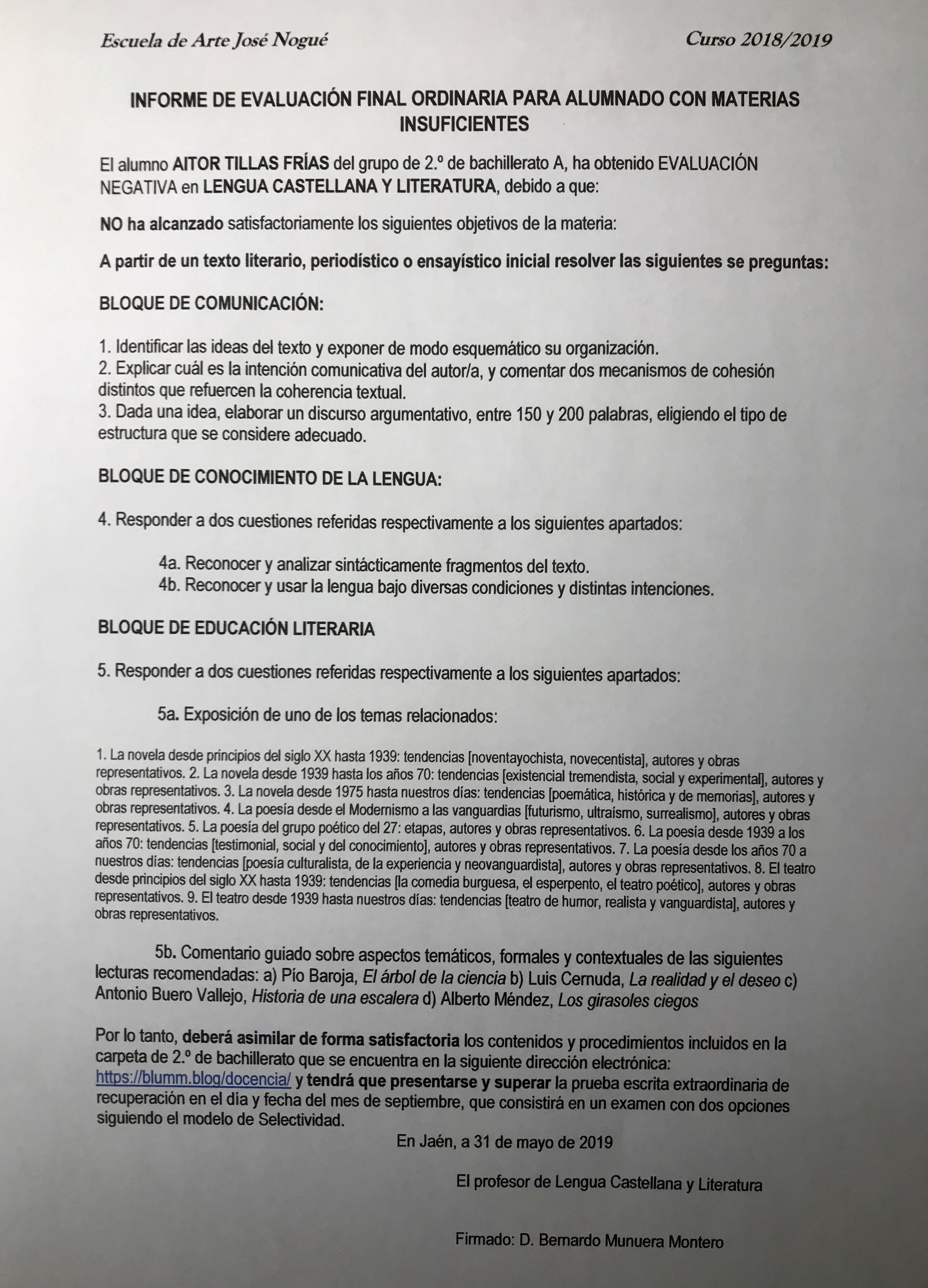 .Tropo 32: Suspenso Informe de la evaluación final ordinaria para el alumnado que no ha entendido qué es un tropo *Demás tropos* Suscríbete al blog por correo electrónico Introduce tu correo electrónico para suscribirte a este blog y recibir avisos de nuevas entradas. Dirección de correo electrónico: Suscribirse Descubre más desde soporto tropos Suscríbete y recibe las últimas entradas en tu correo electrónico. Escribe tu correo electrónico… Suscribirse Compartir Haz clic para compartir en Facebook (Se abre en una ventana nueva) Facebook Haz clic para compartir en X (Se abre en una ventana nueva) X Haz clic para compartir en Threads (Se abre en una ventana nueva) Threads Haz clic para compartir en WhatsApp (Se abre en una ventana nueva) WhatsApp Haz clic para compartir en Telegram (Se abre en una ventana nueva) Telegram Haz clic para compartir en Reddit (Se abre en una ventana nueva) Reddit Haz clic para compartir en LinkedIn (Se abre en una ventana nueva) LinkedIn Haz clic para compartir en Pocket (Se abre en una ventana nueva) Pocket Haz clic para enviar un enlace por correo electrónico a un amigo (Se abre en una ventana nueva) Correo electrónico Más Haz clic para imprimir (Se abre en una ventana nueva) Imprimir Haz clic para compartir en Tumblr (Se abre en una ventana nueva) Tumblr Haz clic para compartir en Pinterest (Se abre en una ventana nueva) Pinterest Me gusta Cargando... Relacionado