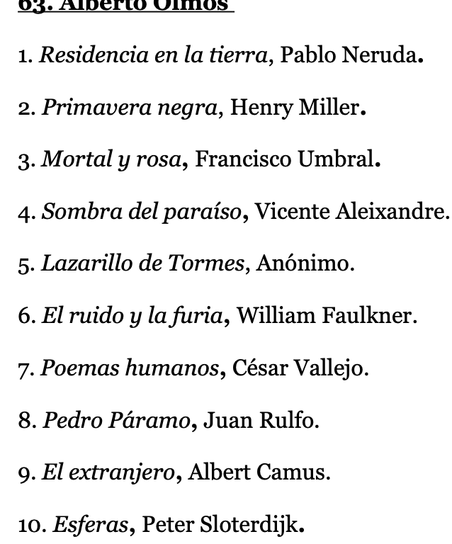 ¿Una lista?, pues aquí está una de las posibles listas de libros que me han marcado como lector. Mañana podría ser otra. Después de cien, se trataría de sacar factor común; sobre todo para aplicar el método científico. Si no tienes nada que leer este verano, aquí tienes diez candidatos. Disparador del tropo: la fotografía que lo encabeza, que a su vez viene de un tuit de dicho autor.