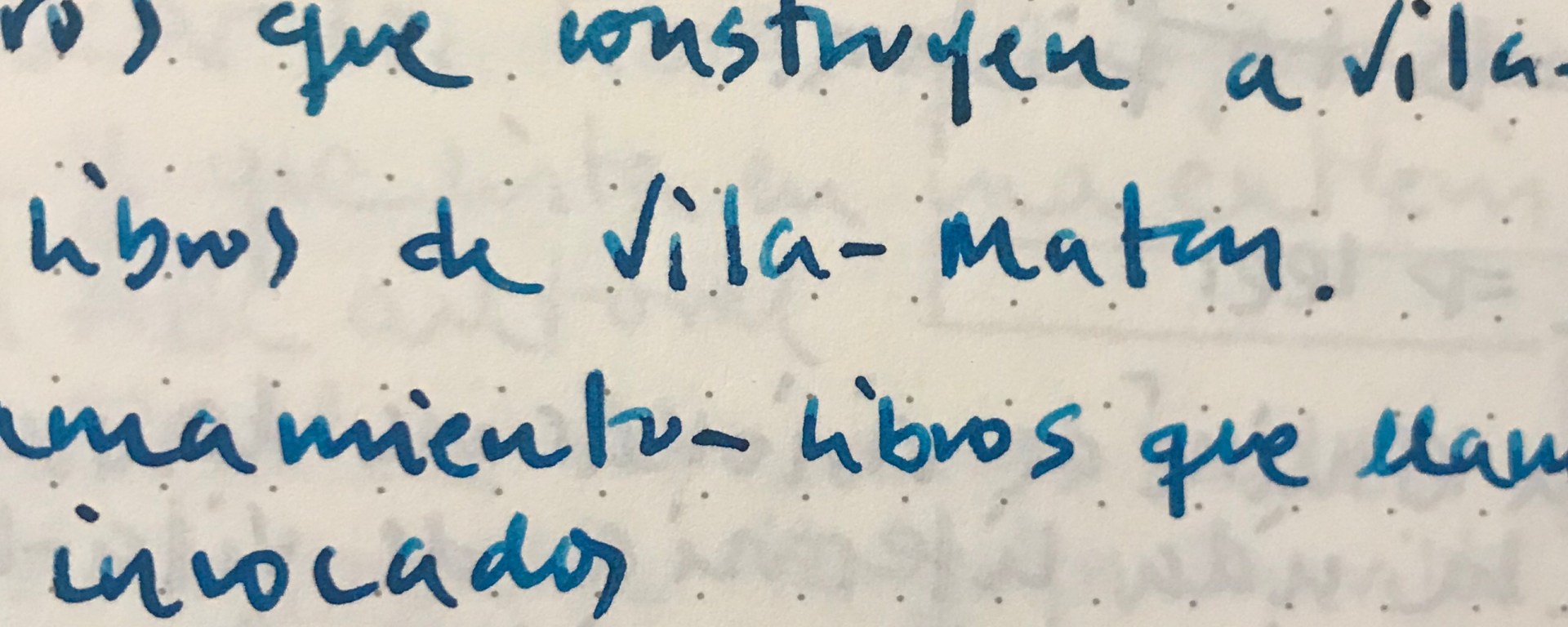 Decía Vila-Matas porque he rescatado el cuaderno de septiembre de 2016. En la página 227 y siguientes escribo sobre Sergio Pitol y sobre Enrique Vila-Matas. Por esa fecha visioné un vídeo sobre él que me deslumbró. Soy muy deslumbrable. Pero en el cuaderno escribía que lo único que hacía Vila-Matas era extraer de lo más cotidiano su materia para escribir. Y con ella, Vila-Matas hacía ficción.