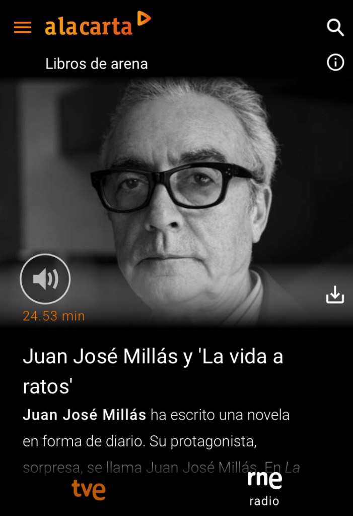 Era un diario, decía. Hoy, regresando de Beas de Segura, he puesto el podcast del programa “Libros de arena”, de Radio Nacional. Tenía pendiente escuchar una entrevista de media hora que le hacían a Juan José Millás sobre lo que había publicado recientemente. Bueno, digo recientemente, pero estoy hablando de septiembre. El podcast es de esa fecha. Lo vinculo, por si se te ocurre escucharlo. Y resulta, que el libro es un diario de los últimos cuatro años del escritor. Un diario. Un diario a lo Trapiello, intuyo. Aunque no he terminado ninguno de los dos libros, intuyo, porque soy un hombre de mucha intuición, que tendrán características comunes estilos no muy disímiles. Intuyo, y lo escribo por tercera vez, pero no aseguro. La vida a ratos, que es el título del libro de Millás también me gustaría leerlo, así como tener aparcado en el sótano de casa, además de un cuatro latas, un, no sé, un Renault Alpine o el Aston Martin de James Bond. Así pues, tengo dos libros pendientes. Solo. Y me hago ilusiones.