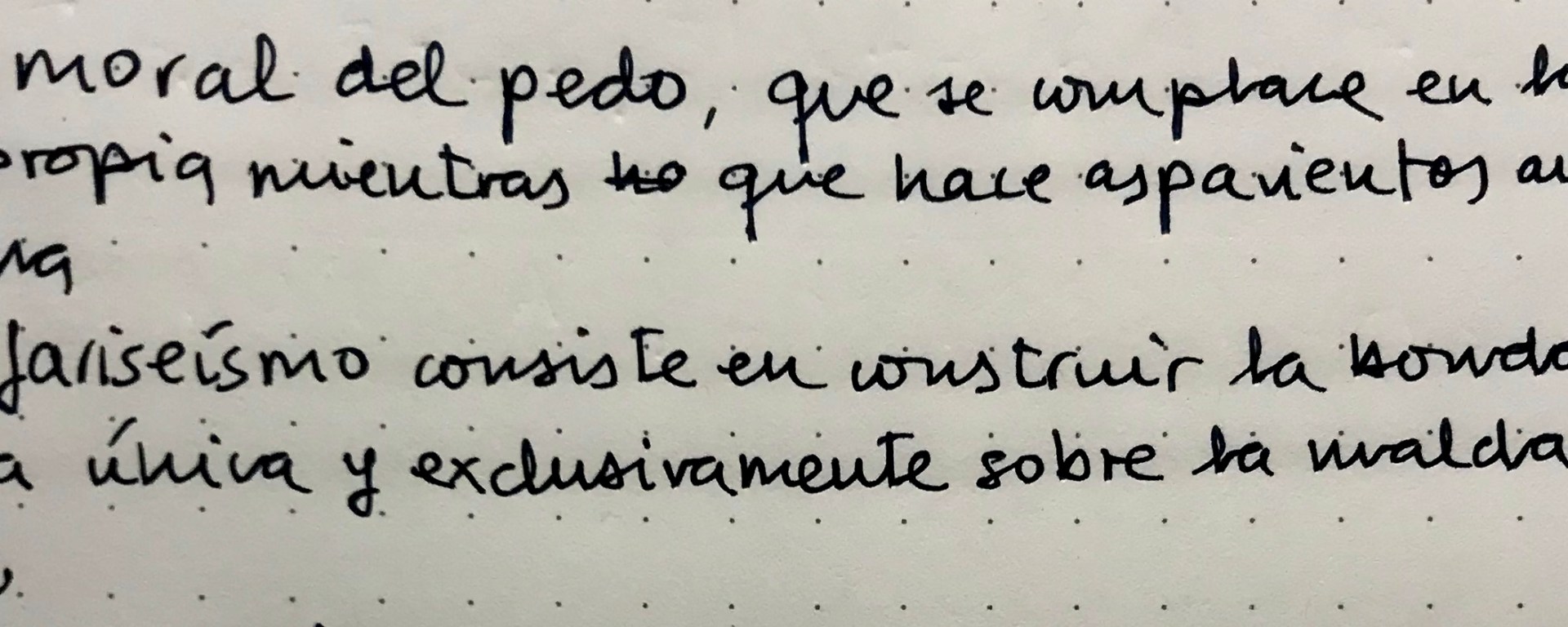 Me he pasado parte de la tarde escribiendo un artículo para La Contra de Jaén. Sale el martes. Ferlosio ha sido mi salvación y versará sobre la moral del pedo. La moral del pedo es una moral farisea, muy farisea, que practican a diestro y siniestro los diestros y los siniestros. Políticos. No hay centro. La moral del pedo determina, en primera instancia, que tu ventosidad siempre olerá mejor o incluso no olerá frente a la ventosidad y el pedo ajeno, que será el causante de que el ozono de esta tierra se raje en dos. Por lo menos, visto desde otro punto de vista, el más surreal, un agujero siempre nos hará falta para escapar de las cabezas piojosas con que nuestros políticos hablan y farisean. Corto, cierro, que me voy a ver quién se va a reír de nosotros durante cuatro años más. Por cierto, el martes podrán leer el artículo titulado “La moral del pedo” en este sitio, que es mi columna en La Contra de Jaén: Échele leche, que es un palíndromo, claro.