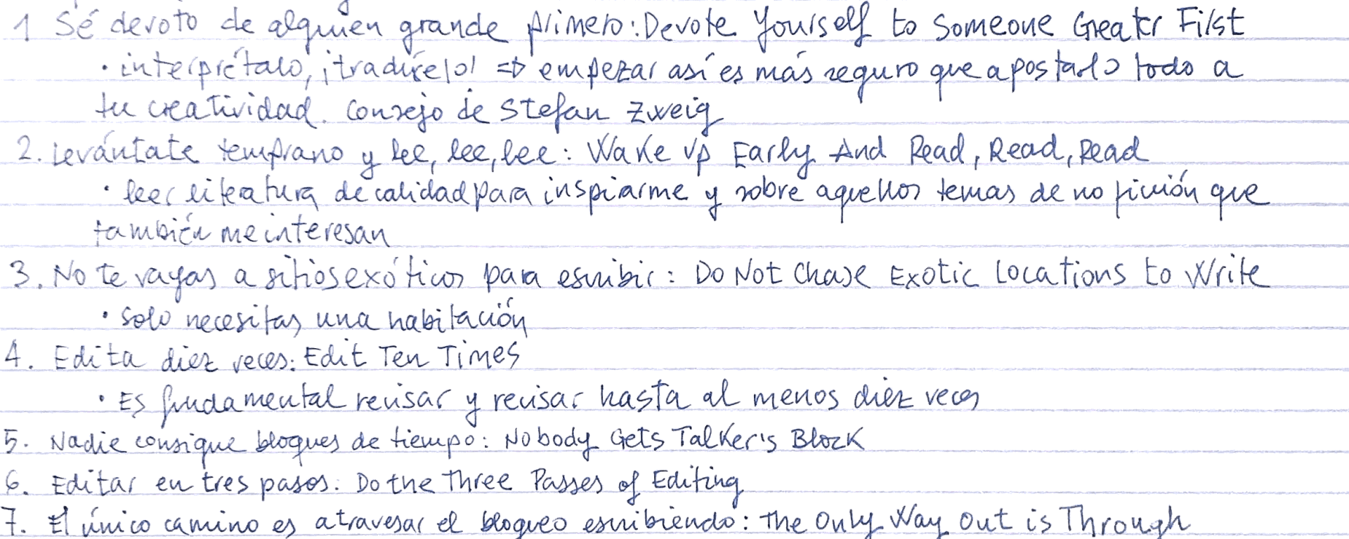 Pero había comenzado con la ficha del 24 de octubre. Me despista su procedencia, pero sobre todo la preposición «a» incluida en «Referencia a writingroutines.com”, porque la verdad, no sé la fuente. Y me disgusta no conocer las fuentes de donde la extraje. Pero la expongo aquí porque me entretuve en el cuarto punto: «Edita diez veces: Edit Ten Times».