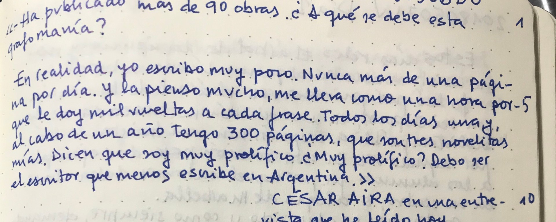 César Aira en una entrevista que leí el 6 de junio de 2018.