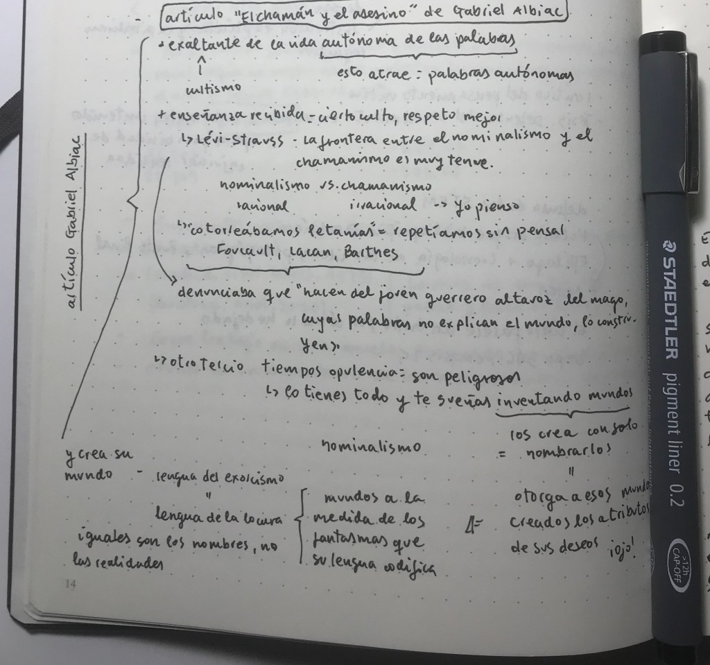 No digo más, ni escribo. Las notas que muestro más abajo son los apuntes que he tomado de «El chamán y el asesino», de Gabriel Albiac. Un artículo donde se critica la moda de crear una realidad a base de nombrarla hasta enloquecer con las palabras que le han dado textura. Más o menos. Un artículo complejo, pero sin rebabas, ejemplarmente construido. Es de Albiac, ¿lo dudabas?