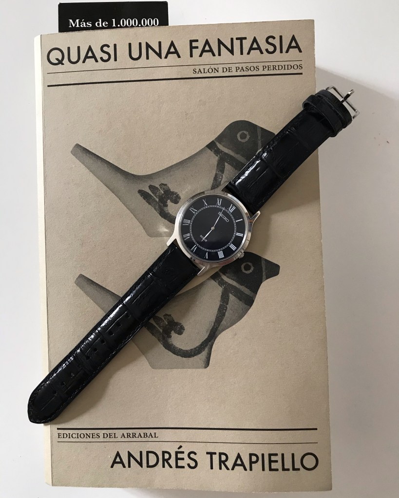 Pero no lees, o lees menos de lo que quisieras. Hay en Twitter cierta coña en torno a las horas de media que leen los españoles, porque ni por asomo alcanzamos esa media. Pero si el ministerio lo dice, o el organismo pertinente te lo susurra… Hoy, por ejemplo, he iniciado un experimento. Será farragoso, porque necesitaré un cronómetro y acordarme de pulsarlo al principio y pulsarlo al final, es decir, darle al clic cada vez que me siente a leer y me levante de leer. Pero lo he hecho, y algo he anotado en el cuaderno. Incluso he subido una fotografía a Instagram para celebrarlo con un texto chorra, como decía un compañero de facultad. Puedes leerlo si me sigues, aunque tengo privada la cuenta, ahora que lo pienso. El asunto consistía en comprobar a qué altura del día alcanzaba una hora de lectura. Así de sencillo. Y con ese objetivo en la cabeza, el de conocer la hora del día en que alcanzo esa meta, me he dirigido al instituto. Entraba a segunda, y a tercera, que tenía libre, aproveché para tomarme un café y corregir. Eso es lo que he hecho, pero hoy, además, he reservado unos minutos para leer al final de esa hora. A las 11.13 h he abierto Quasi una fantasía y he leído un cuarto de hora o así. Empezaba tarde en el día el reto, pero no había encontrado un hueco antes.