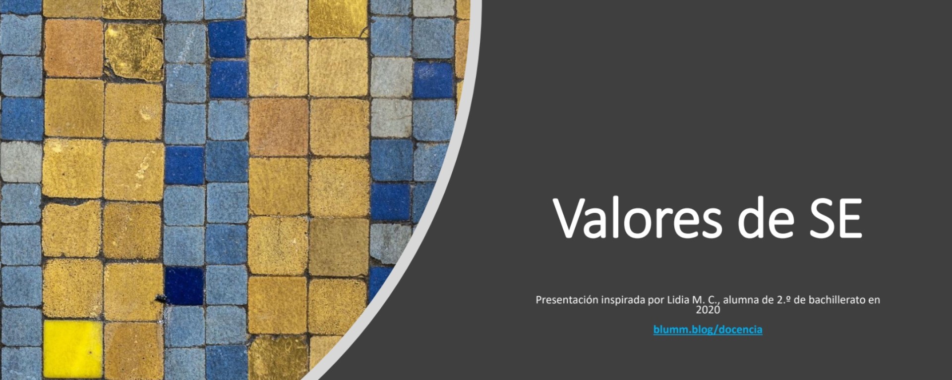Aquí, pues, tienen ustedes, queridos estudiantes de segundo de bachillerato, una presentación en torno a los valores de SE que seguro les ayudará. Disfrútenla. De todo corazón. Vislumbrarán a SE, y se enamorarán de él.