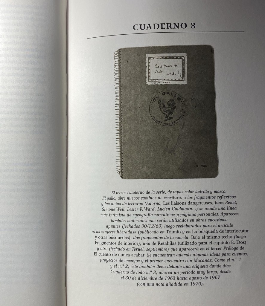 En realidad, lo de Carmen Martín Gaite es puro pragmatismo. Se tomó tan en serio esta consideración de Benet que no se cansó de utilizar cuadernos. ¿Ves? Ahí sí me parezco a la Gaite. Benet le sugería que escribir tenía más de voluntad que de inspiración. Y a eso se dedicó en algunos de sus cuadernos, a la forja de ricos tropos sobre lo aquello que leía, como hace con Tiempo de silencio: