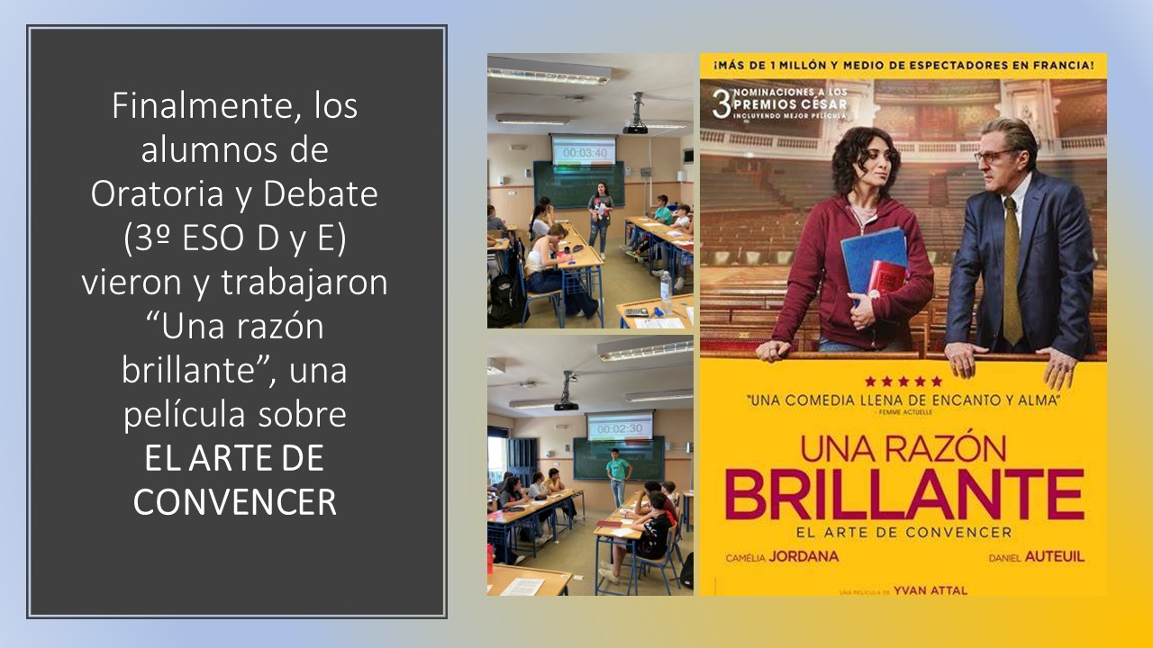Durante los dos últimos días hemos visto la película “Una razón brillante”, que versaba sobre cómo alguien de extracción social media baja era capaz, gracias a la oratoria y al debate, de ascender socialmente. Ahora te toca escribir un comentario crítico sobre esa película.