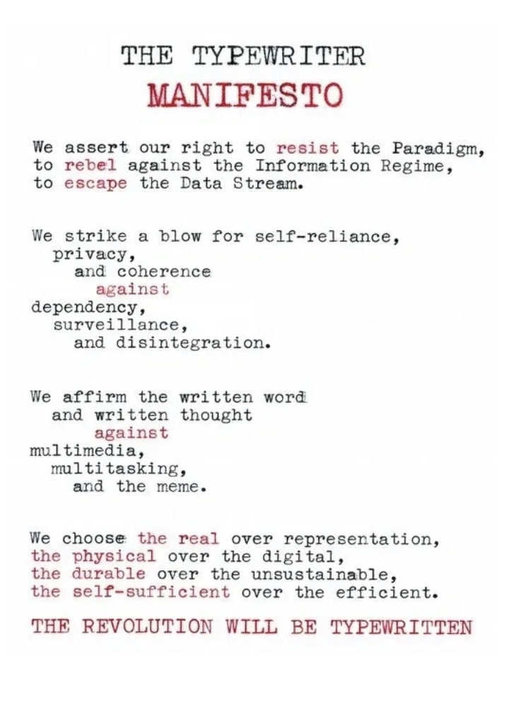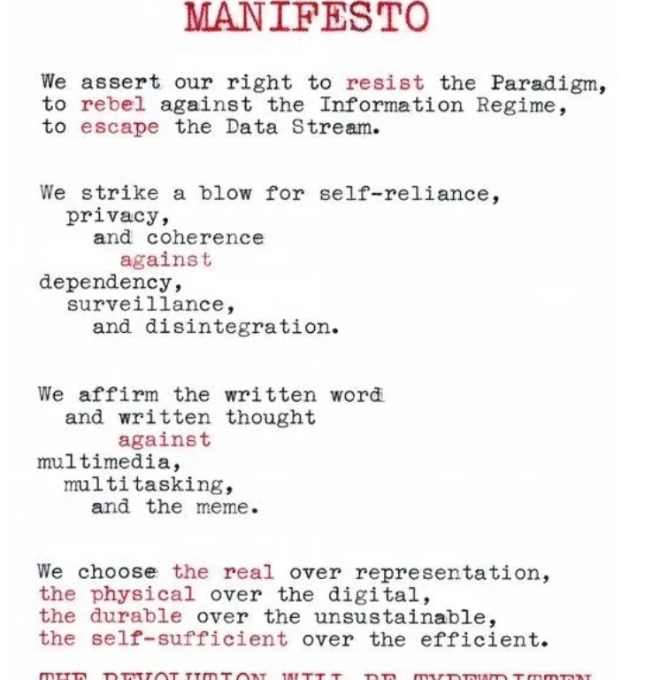 Tras esta tabla de contenidos el autor incluye un manifiesto mecanoescrito. Me gusta. Dice así: