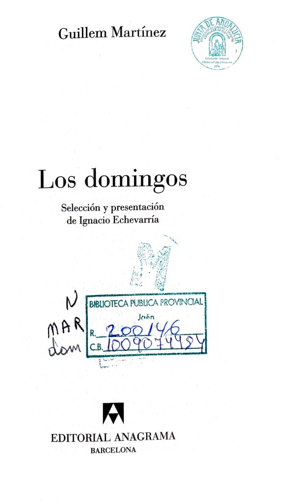 MARTÍNEZ, Guillem (2021). Los domingos. Barcelona: Anagrama. 278 páginas. Tiempo de lectura invertido: 4 h 30’.