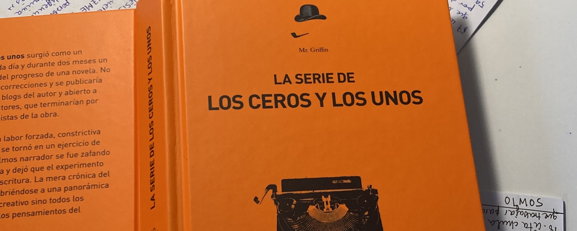 Hoy, cuatro años después, parte del blog de Alberto Olmos, Hikikomori, se convierte en La serie de los ceros y los unos¸ que publica Mr. Griffin. 460 páginas donde solo se piensa en literatura. Un blog que será el reflejo del pensamiento de un narrador que, desde el 1 de diciembre de 2008 hasta el 14 de febrero de 2009, contaba cómo acometía y qué urdimbre usaba para escribir una novela. Lo enunciaba diáfano: «Quiero escribir lo que estoy escribiendo cuando pienso». Simple, pero estableció ciertos márgenes. El primero, «escribir mal es ser escritor. Escribir bien es literatura»; y el segundo, «lo difícil no es empezar ni acabar un libro, lo difícil es seguir; y para seguir hace falta algo que no es talento y que, en mi opinión, fundamenta la novela como género: ganas».