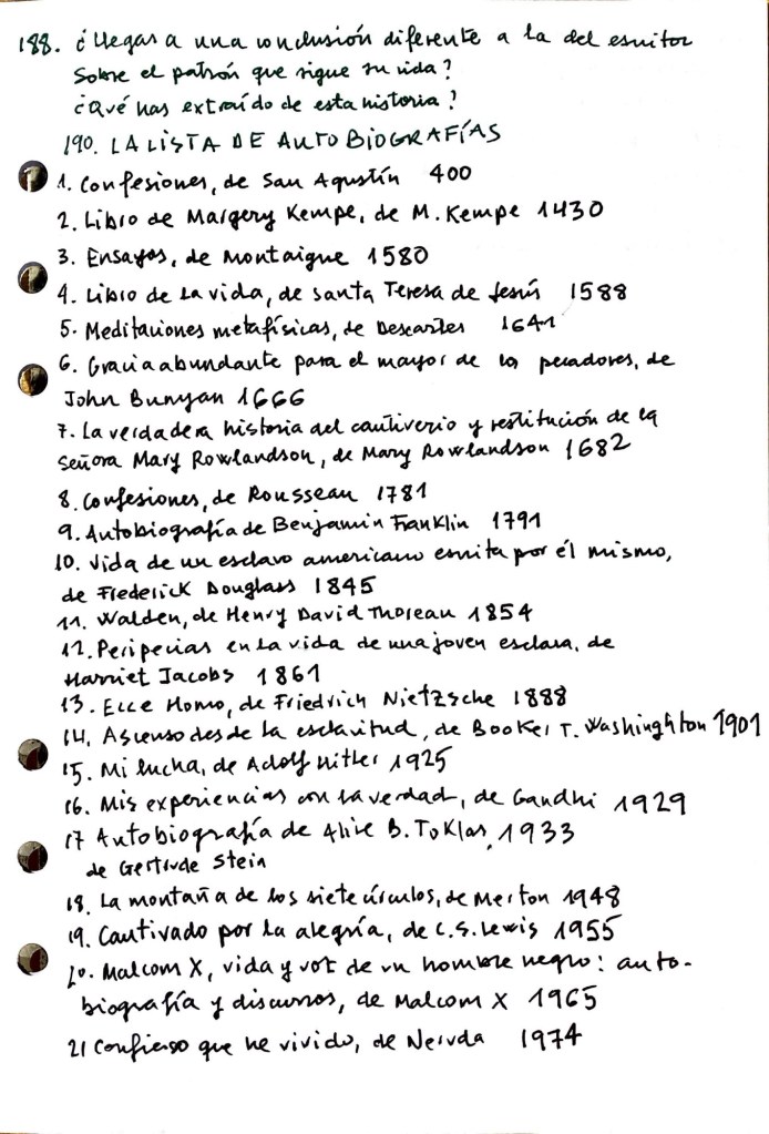 Lo primero, evitar la ansiedad. Y para ello nos propone que acometamos la lista del programa de libros (abajo la expongo) de uno en uno. E insiste en que no deberíamos comenzar con otro hasta que no hayamos acabado con el que primero nos comprometimos. No hacer scroll, no pudrir nuestro cerebro con la multitarea, con el vagabundeo sin rumbo. Es el primer requisito que se nos propone para evitar la podredumbre mental de la que se quejaba, por ejemplo, Thoreau, que decía que debían invertirse más recursos en evitarla que invertir para evitar la podredumbre de la patata.