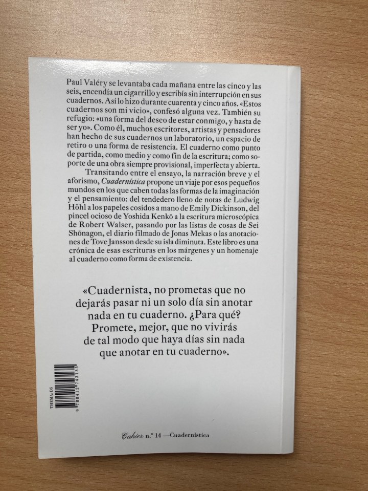 Hago referencia al libro de Cristóbal Polo porque en él, que va de cuadernos, podemos encontrar referencias y textos precisos, sugerentes y muy certeros, chulos, en definitiva, sobre lo que significa utilizar un cuaderno en el día a día. Textos a los que, ahora que comienza el curso, podríamos recurrir para dulcificar –cuando sea preciso– esos días y momentos duros, menos llevaderos y angostos que van a aparecer a lo largo de las jornadas y las semanas. Un cuaderno que nos invita, una vez abierto, a refugiarnos en él. Lo utilizaremos para anotar la fecha de un examen, el nombre de un alumno, la programación de una semana, o el contenido de una tutoría, pero que, además del típico y tópico uso, Cuadernística te descubre que un cuaderno podemos utilizarlo como un verdadero refugio donde la forma del deseo de estar con uno mismo se hace realidad: ahí eres y estás tú, tal y como eres. Y llega cierta paz, sin duda, porque descansas en él.
