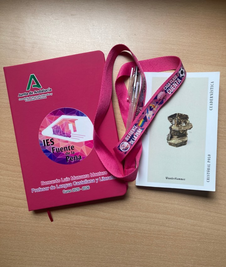 Así que lo primero que voy a hacer aquí es darle las ¡gracias! al equipo directivo del IES Fuente de la Peña por su obsequio. Está empeñado en que nos transformemos. Así, y a su vez, transformaremos a nuestros alumnos. Porque ese obsequio, este cuaderno, es la mejor herramienta que existe para transformar a una persona. A mi edad, ni lo dudo. Si algún día me diese por contar los cambios que en mí ha provocado un cuaderno fliparían.