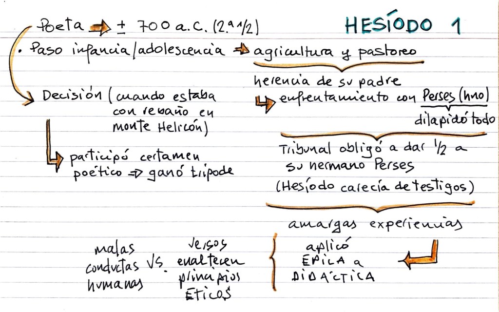 De Hesíodo (Ascra, 700 a. C.) aprendes que la vida gira en torno a dos verdades: la primera es que el destino universal del hombre es el trabajo y la segunda que, quien esté dispuesto a trabajar, podrá con él. En la disposición para trabajar radica el truco. En Los trabajos y los días encuentras sabiduría y consejos acerca de cómo hay que concebir el trabajo. Lo primero que prescribe Hesíodo es una vida de honesto trabajo. Por eso no tolera ni la ociosidad de los jueces injustos, dice, ni la usura, que es en realidad una grave falta de honestidad hacia uno mismo. Por este motivo Hesíodo considerará el trabajo como origen de todo bien y explicará en esta obra, lo expondrá más bien, cómo tanto los hombres como los dioses odian a los holgazanes, a los que compara con los zánganos en una colmena.
