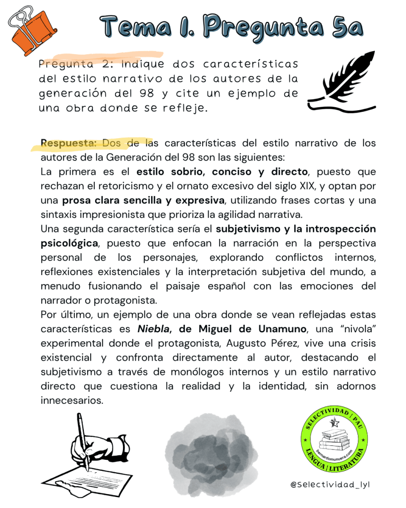 9 cuestiones sobre la pregunta 5a de selectividad del tema 1: novela hasta 1939