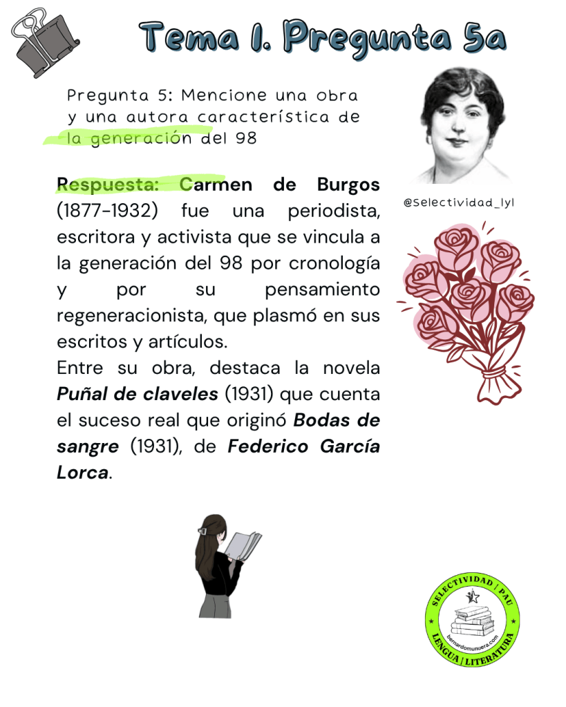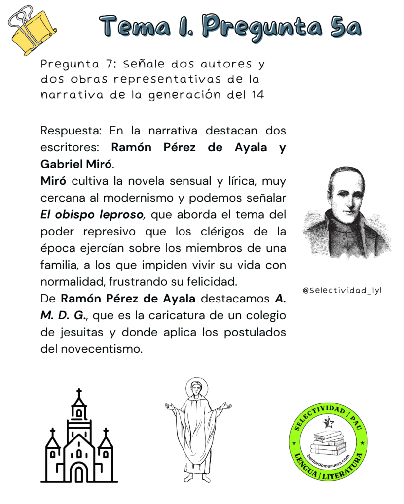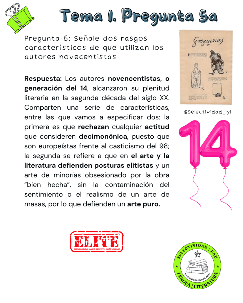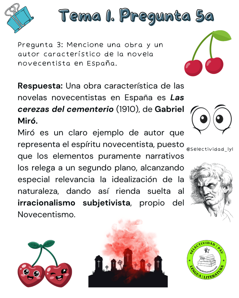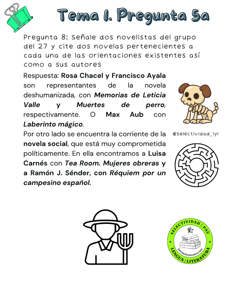 9 cuestiones sobre la pregunta 5a de selectividad sobre el tema 1: La novela desde principios del siglo XX hasta 1939: tendencias, autores y obras representativos.