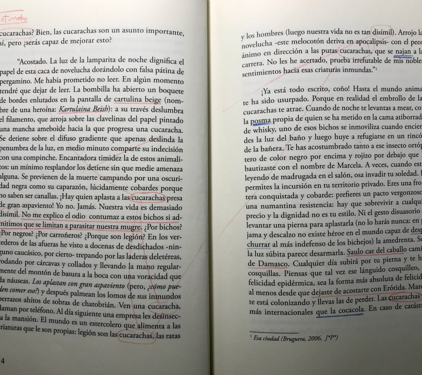 9. ¿Por qué esa obsesión con la muerte? 10. Alguien que está dilucidando cómo matarse o cómo quitarse de en medio. 12. Hay un escritor que sabe que no escribe la mierda bestsellera que escriben los demás. En la página 13 se relacionan los libros que triunfan hoy. 15. Vocabulario: despachurrar. 15. “Las cucarachas son más internacionales que la cocacola”. Aquí está el tropo. 18. … Continúa leyendo Tropo 31: Cucarachas
